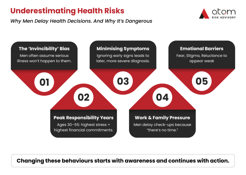 Insurers globally report a major portion of claims coming from men in their 30s, 40s, and 50s — precisely when mortgages are highest, children are in school, and financial commitments peak.